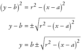 Equation of a circle with radius r and center point (a, b)