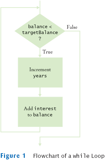 while (balance < targetBalance) { year++; double interest = balance * rate / 100; balance = balance + interest; }